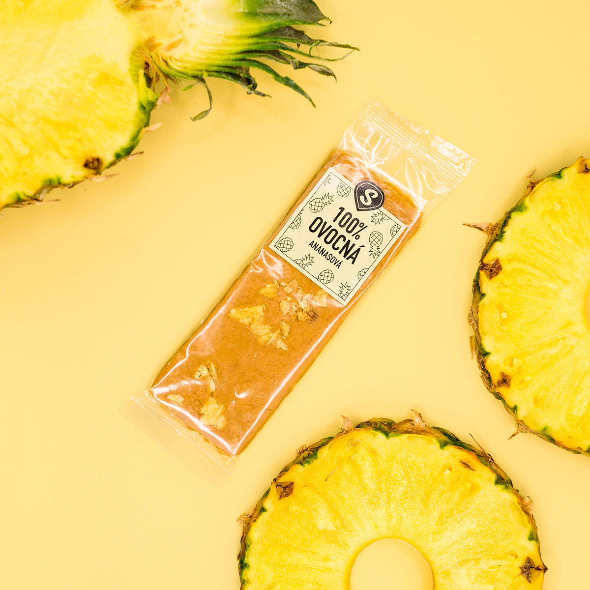 Pozor na mňa! Som zdravá tyčinka z toho najlepšieho ananásu! Prakticky zabalená, plná sladkej chuti, nadupaná energiou a pripravená na každú akciu.