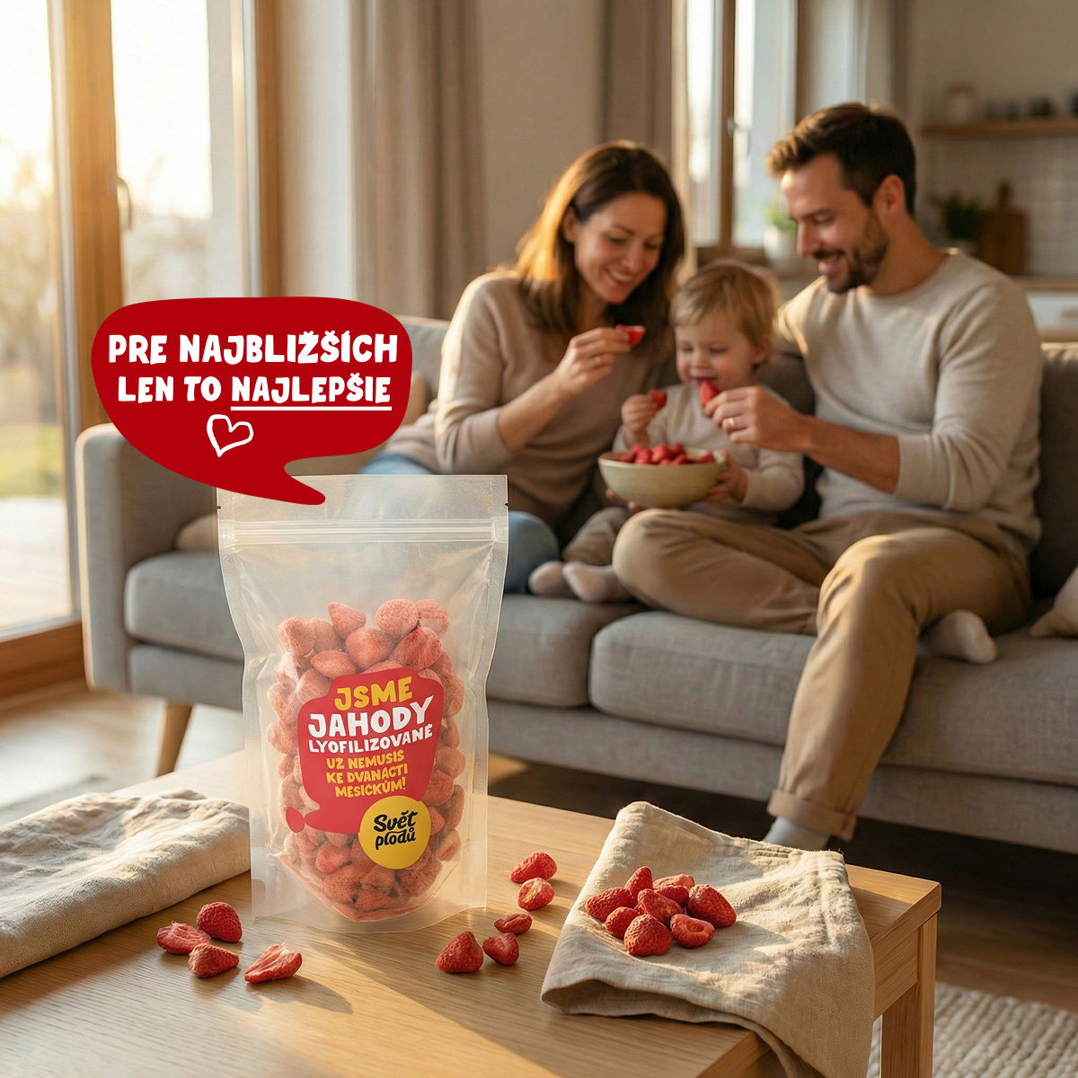 V lete nás možno máš v záhradke, ale pokiaľ Ťa prepadne chuť aj mimo sezóny, nie je to problém! Vo Světě plodů nás nájdeš vždy v plnej forme. Chrumkaj si naše sladučké, červené plody.