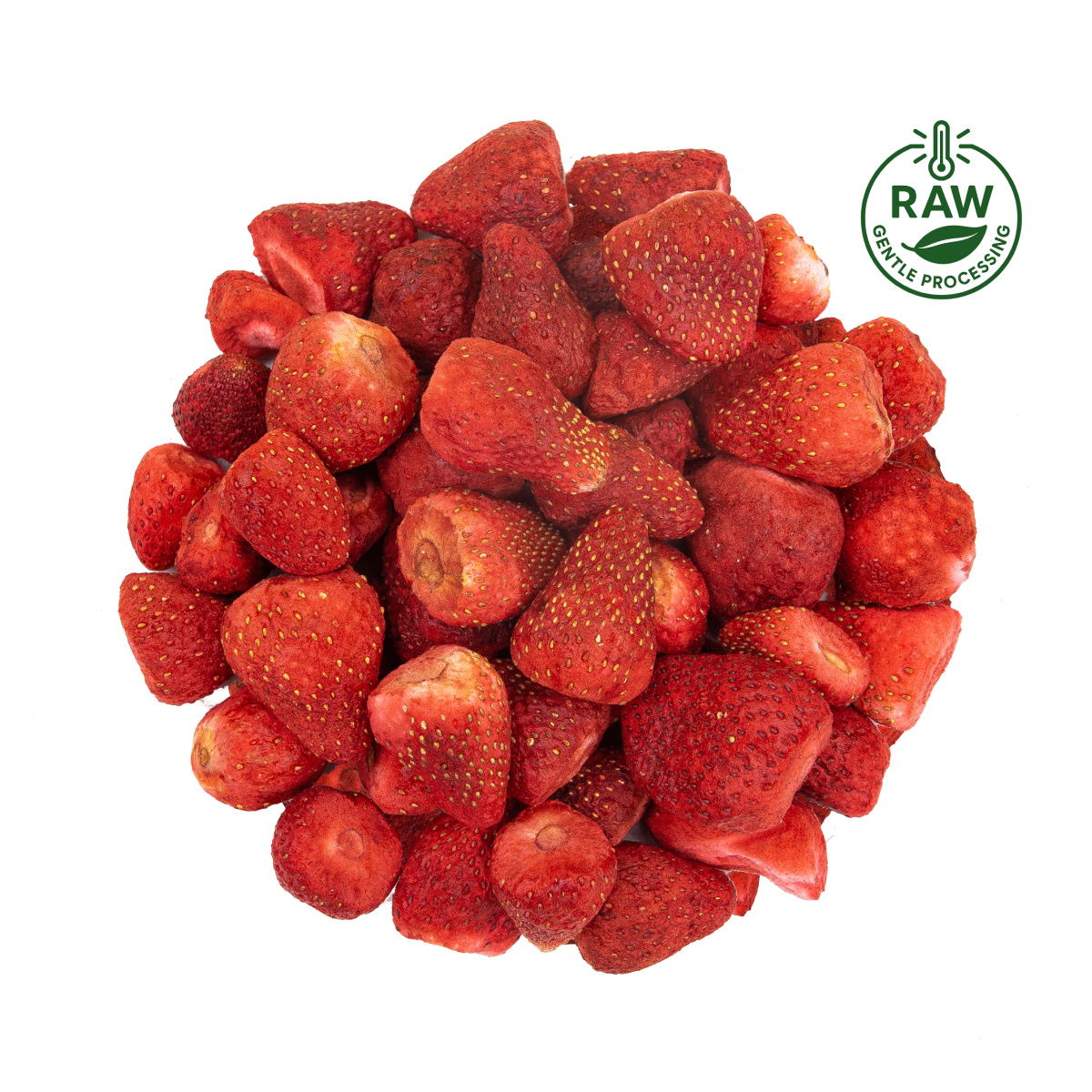 Venku je zima, sychravo a vy dostanete nepřekonatelnou chuť na velké, červené jahody jako z letní zahrádky. Nesplnitelný sen? Vůbec ne! Celé kusy jahod seženete v průběhu celého roku ve Světě plodů! Náš dodavatel z Turecka jahody sklidil hned poté, co perfektně dozrály na sluníčku. Dokonale šťavnaté a sladké jahody následně čekala lyofilizace – unikátní proces sušení mrazem ve vakuu. Díky tomu si tyto celé kusy jahod zachovaly svou typickou vůni, lahodnou chuť, sytě červenou barvu a obsah prospěšných látek.