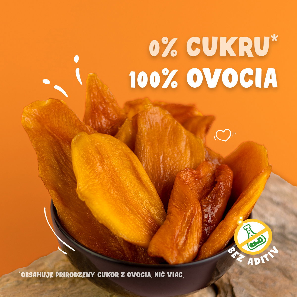 Oslňujúca oranžová farba a telo samý sval. Áno, presne to som ja. Mäkké mango, Tvoj idol zo sušeného ovocia. Pozvi si ma domov a ja Ti ukážem, že nie som len krásne, ale aj božsky dobré.